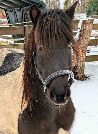 Arda ist eine gutmütige, freundliche Rappscheckstute die 2016 in Deutschland geboren wurde und einfach im Handling ist.