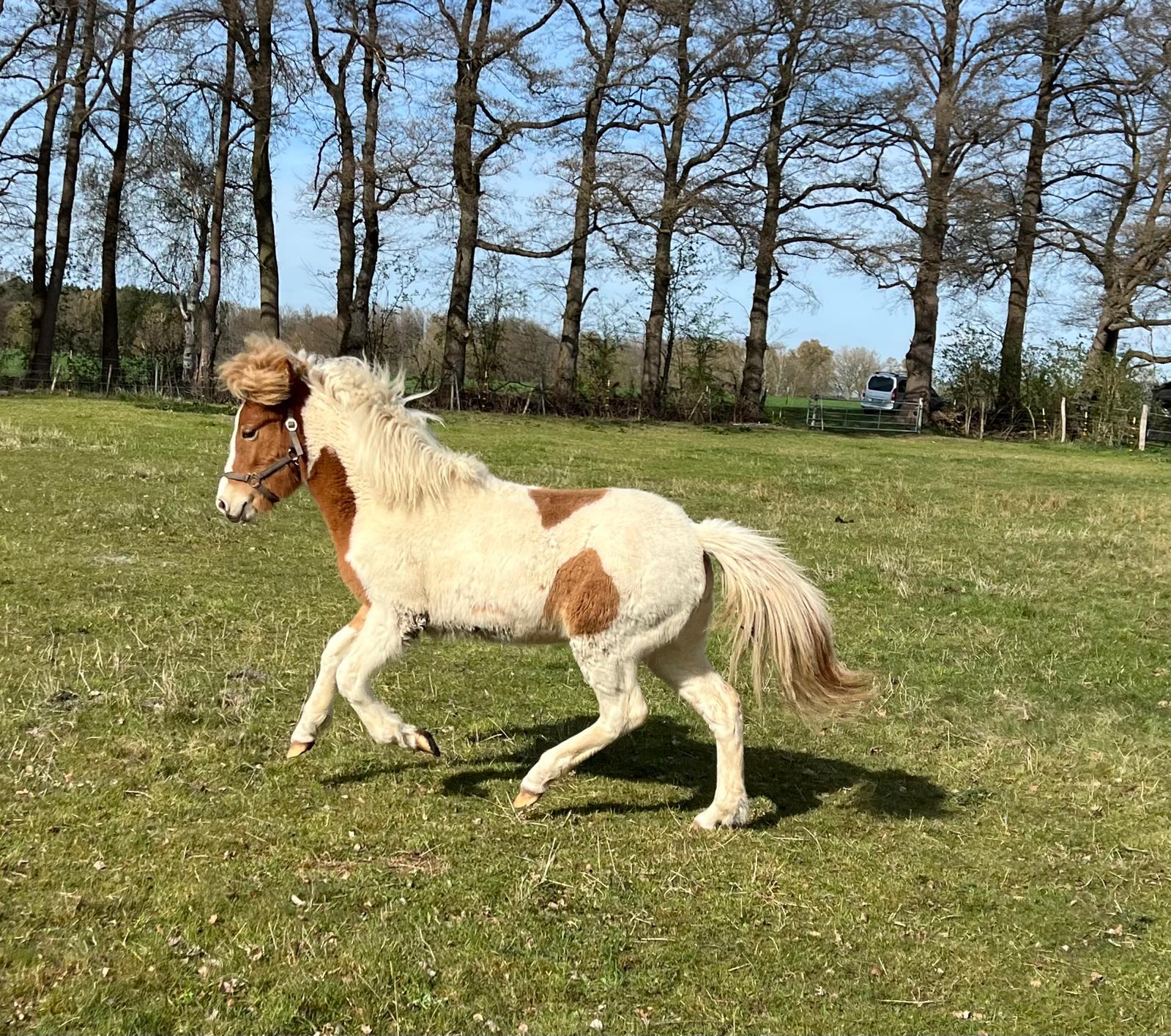 Farbe: Fuchs-Schecke (kann verdeckt Windfarbe tragen)