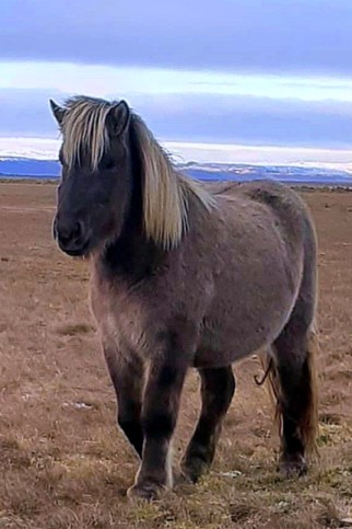 Freundliche Stute mit viel Tölt. Einfach im Umgang, sozial in der Herde. Vom alten Typ, klein, kräftiges Exterieur, eher mittleres Temperament,